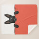 Adorable black German Shepherd Dog tucked into bed. A soft sherpa blanket that makes a great gift for GSD lovers. Visit Jenn’s Doodle World for even more products with this cute design, as well as more dog breed themed gifts.
