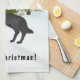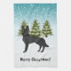 Black German Shepherd Dog Winter Forest With Text Tea Towel