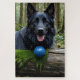 Black German Shepherd in Forest with Ball
