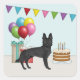 Black German Shepherd With Cake Colourful Birthday Square Sticker