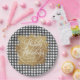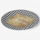 Black Gingham Check Gold Faux Foil Holiday Paper Plate