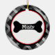 Cherish your pet by putting him or her on your Christmas tree! This Christmas ornament has a black gingham, chequered background with a centre circle outlined in red and black. There's a white centre with a large black dog bone . Personalise with name. Check out the many other designs we have in our store and other stores too: Kidsgalore and Skinsgalore