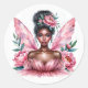 Black Girl Fairy Pink Peonies Watercolor Classic Round Sticker