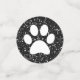 Animal paw prints in fun black and white glitter pattern printed on cardstock table sprinkle confetti that works with any pet's or children's cat, dog, puppy, or kitty birthday theme, and also represent foot tracks from a school mascot or provide clues in a scavenger hunt at a fundraising event with a nature theme.