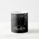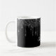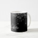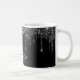 An elegant, girly and glam mug. A chic black background decorated with faux glitter drips, paint dripping look. Personalise and add your name and monogram initials. The name is written with a hand lettered style script. White coloured letters.