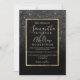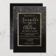 A modern, pretty chic and elegant faux black glitter sparkles shower ombre with black colour block wedding party invitation with gold ombre pattern.