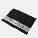 A classy black glitter welcome door mat to invite your guests in style. The faux black glitter look doormat has a silver band with the welcome words ,that you can customise ,to make it unique and special.