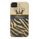 Black Glitter Zebra Print & Jewel Crown iPhone 4 Case-Mate iPhone Case