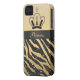 Elegant Custom Case Mate black digital glitter zebra animal print iPhone 4/4S case with a gold background and beautiful digital gold with digital print diamonds and black jewels princess bling crown. There is a pretty digital black ribbon with the word Princess which can easily be customised or removed if you desire. A stylish, beautiful and chic fashion gift for women and girls who love a touch of bling! PLEASE NOTE: All products on Zazzle have flat printed images. If you need any assistance customising your product please contact me through my store and I will be happy to help.