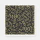 This numerical design is a black and gold random number pattern with a gold milestone number 100 repeated in varied sizes and angles over a black background and framed with a narrow black square around the edges.