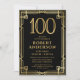 This fabulous black and gold men's 100th birthday party invitation featuring the number 100 in gold with modern fonts surrounded by a gold art deco frame on the front and your favourite photo of the guest of honour in black and white on the back would be perfect for asking people to join you as you celebrate the man in your life's 100th birthday. It is traditional and classic while being fresh, modern and contemporary. To see your unique invitations select "Personalise this template" and type in your information and upload a photo. The templates will automatically turn your photo black and white. It's super easy!
