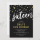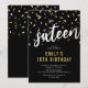 Black & Gold 16th Birthday Sweet Sixteen Invitation