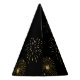 Black and gold "happy new year 2027" party hat with fireworks and an editable year to celebrate during new year's eve dinner or celebration.
