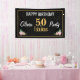 Celebrate your fabulous 50th birthday with this elegant black and gold banner featuring pink roses and sparkling confetti accents. Perfect for a stylish milestone party.