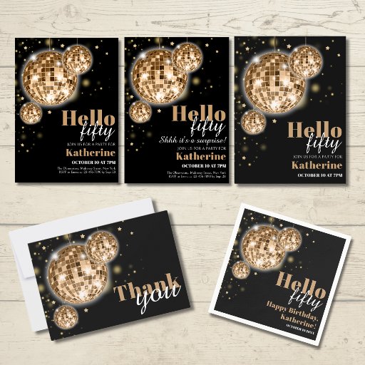 Hello Fifty 50th Birthday Supplies in Black & GoldDesigned by Rita R