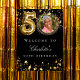 A welcome sign for a 50th birthday party. Black background and faux gold coloured stars. Personalise and add a name and photo.