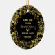 Elegant gold tones floral damasks over the black custom background. Royal-blue and gold vintage frame customisable 50th wedding anniversary Christmas ornaments customisable template.