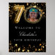 Black gold 70th photo birthday party welcome poster