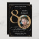 Black Gold 80th Birthday Save The Date Custom Invitation. And elegantly designed special birthday celebration save the date, featuring a custom photo of birthday person and script calligraphy with vintage flourish elements. Simple enough to fit a variety of themes and colours!