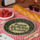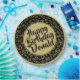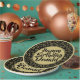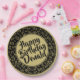 This over-the-hill design has a black and gold random number pattern with a gold milestone number 85 repeated in varied sizes and angles over a black background. There is a gold circle in the centre for your text and black and gold rings around the rim.