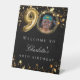 A welcome sign for a 90th birthday party. Black background and faux gold coloured stars. Personalise and add a name and photo.