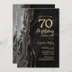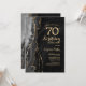 Black and gold agate 70th birthday party invitation. Elegant modern design featuring watercolor agate marble geode background, faux glitter gold and typography script font. Trendy invite card perfect for a stylish women's bday celebration. Printed Zazzle invitations or instant download digital printable template.