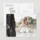 This elegant horizontal save the date postcard features a black watercolor agate border trimmed with faux gold glitter. Easily replace the sample image with your own photo of the future bride and groom. The customisable text combines black handwriting script and copperplate font; a white gradient filter helps make the text pop. Add your return address and additional details to the reverse side.