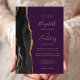 The left-hand edge of this elegant modern wedding invitation features a black watercolor agate border trimmed with faux gold glitter. The customisable text combines gold-coloured handwriting, copperplate and italic fonts on a deep purple background. The reverse side features a matching black and gold agate design.