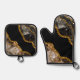 Black & Gold Agate Geode Glitter Oven Mitt & Pot Holder Set