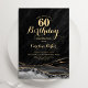 Black and gold agate 60th birthday party invitation. Elegant modern design featuring watercolor agate marble geode background, faux glitter gold and typography script font. Trendy invite card perfect for a stylish women's bday celebration. Printed Zazzle invitations or instant download digital printable template.
