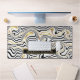 Bring a touch of sophistication to your workspace with this abstract black & gold pattern desk mat, featuring faux gold colours, retro squiggle / marble pattern, as well as space for your name within a black and gold rectangle. You can move the name in any position to suit your own workspace. Boost your productivity and make a statement with this luxurious desk mat design, perfect for your home desk or office.