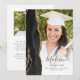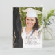 This trendy 2025 graduation announcement features a black watercolor agate geode border with faux gold glitter highlights. The graduate's first name appears as an elegant charcoal grey handwriting script overlay on a vertical photo, along with the last name, school and class year in copperplate font. A white gradient filter helps the text pop. A second, horizontal photo appears on the back, along with the announcement and details in charcoal grey text on a white background.