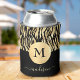 Black Gold Animal Print Monogram Name Glam Chic Can Cooler