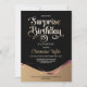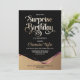 This modern black and gold birthday surprise party invitation features a black and gold colour scheme, separated by a fluid wave and a stylish pink ribbon that flows from one side to the other. The customisable text area allows you to effortlessly include all the necessary details for your special birthday celebration for the guest of honour, including the date, time, venue, and RSVP information. Whether you're planning a cosy gathering or a grand affair, this contemporary invitation is sure to impress your guests.