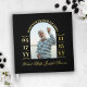 Black square photo funeral guestbook with your loved one's photos in an arch shape with Forever in our hearts in curved text above. On each side, the date of your loved one's birth and the date of their passing with elegant dividers framing these important dates. Your loved one's name in an elegant script beneath, printed in gold foil on a black background. Black and gold foil square memorial guestbook with an elegant design printed with real gold foil to honour your beloved family member or loved one who has passed away.