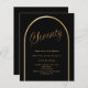 An elegant 70th birthday invitation. A black background with a golden arch on the front.