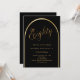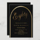 An elegant 80th birthday invitation. A black background with a golden arch on the front.