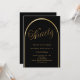 An elegant 90th birthday invitation. A black background with a golden arch on the front.