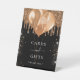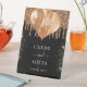 Black background. Decorated with dark drips, dust and golden balloons. With the text: Cards and gifts. Thank you!