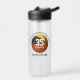 This team colours basketball themed water bottle is suitable for girls or boys and features the realistic image of a basketball that has two recolored panels--one black and one gold--upon which you can personalise the athlete's name and jersey number - their custom school or club name encircles the top of the graphic, and mascot name is below - by katz_d_zynes