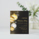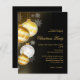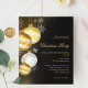 An invitation for a business, company Christmas Party. Classic black background. Decorated with gold and white baubles. Personalise and add the details.