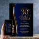 Invite your friends and loved ones with this modern black, gold and blue 30th birthday party invitation. The customisable text area in this invitation template allows you to effortlessly include all the necessary details for your special birthday celebration, including the date, time, venue, and RSVP information. A variety of paper types and corner styles are available for your unique invitations, along with the option to download if you prefer a digital format.