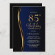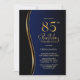 Invite your friends and loved ones with this modern black, gold and blue 85th birthday party invitation. The customisable text area in this invitation template allows you to effortlessly include all the necessary details for your special birthday celebration, including the date, time, venue, and RSVP information. A variety of paper types and corner styles are available for your unique invitations, along with the option to download if you prefer a digital format.