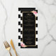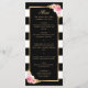 Elegant black and white striped floral wedding menu featuring watercolor blush pink flowers and gilded greenery. Matching items available.