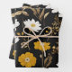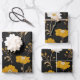 Black Gold Boho Wildflower Garden Wrapping Paper Sheet