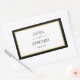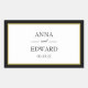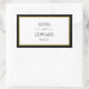 Black and white with a touch of gold classic rectangular stickers. Bride and groom names and date in block and script text within a black and shade of gold border.