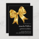 A classic black background, decorated with a large golden bow. Personalise and add a name and party details.