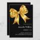 A classic black background, decorated with a large golden bow. Personalise and add a name and party details.