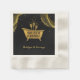 This modern and elegant black and gold napkin captures the festive sparkle of a bubbly wedding brunch. Accented with champagne tones, delicate shimmer, and a touch of luxury, it blends glamourous elements with a minimal aesthetic. The central old fashioned bathtub motif adds a playful twist to this chic setting with pearls, prosecco, and champagne.