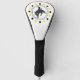 This golf driver cover features a dramatic black cowboy and bucking horse silhouette image. The image is circled by a frame of black dots and double lines. The entire image is then framed by alternating black and bright gold stars. Distinctive and unique! *This design uses image © Graphics Factory.com.